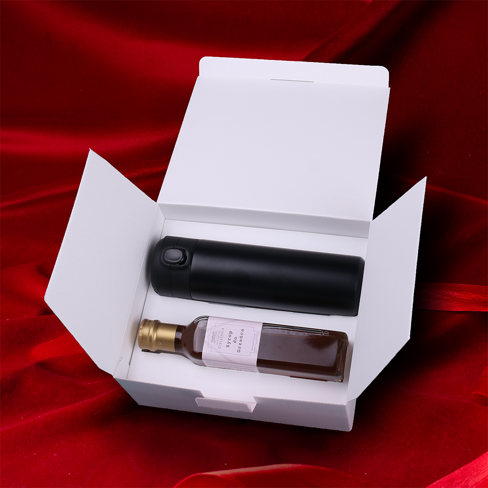 A perfect warming set for your adventures – featuring the Orion thermal mug, ideal for refined decorations, and a spiced mulled wine-style syrup full of aromatic spices to enrich the flavor of tea, coffee, red wine, or desserts. The set is packed in dedicated eco-friendly Snowy packaging and finished with an elegant personalized band. THE PRESENTED DECORATION IS FOR ILLUSTRATION PURPOSES ONLY AND IS NOT INCLUDED IN THE PRODUCT PRICE. THE SET IS AVAILABLE IN DEDICATEDSNOWY PACKAGING WITH A SELECTED DECORATION OPTION.