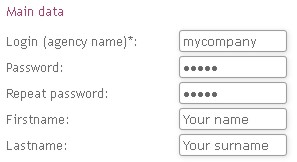 Your first big decision will be selection of a suitable login. It is very important step because this word will become first part of your future web address. The second part will be “porceline.eu”. For example, if you typed "mycompany" as a login your full website adress will be as follows: www.mycompany.porceline.eu. Of course in future you will be able to change login and hence the website address at any time. |
